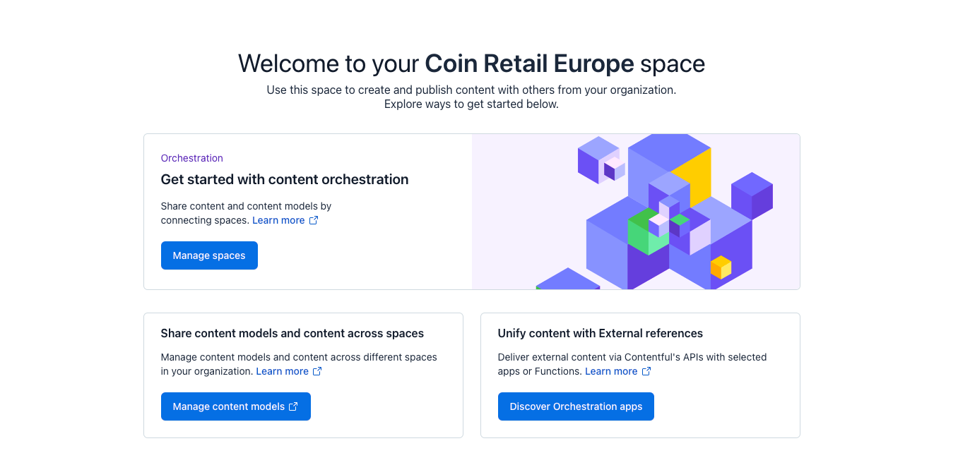 NOTE: For content model templates, you need to enable Orchestration for each space you would like to install templates into. The content types that populate the template can come from any space.