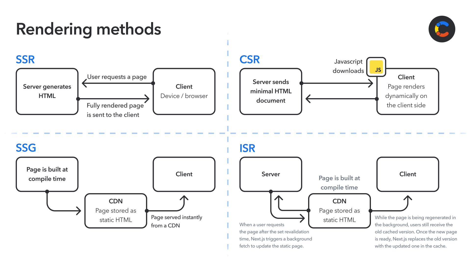 Some teams hesitate to build single-page applications because, although there is a jump in performance and user experience, pages can suffer from poor SEO when built using traditional methods like client-side rendering (CSR), as web crawlers may struggle when attempting to index content rendered in JavaScript, or experience delays in doing so. Rendering strategies such as server-side rendering (SSR) and static site generation (SSG) can fix this problem, as the server sends fully rendered HTML to the browser, allowing search engine crawlers to immediately see the content (no need to run JavaScript first).