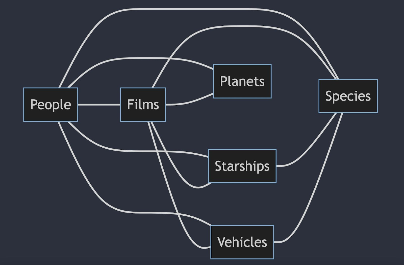 Although, with REST, you could do something similar with a relational database and join the information, but it would likely result in over-fetching data, since the endpoint would return all fields for species and people. As can be seen here, in GraphQL you can make one request to return only the requested information.
