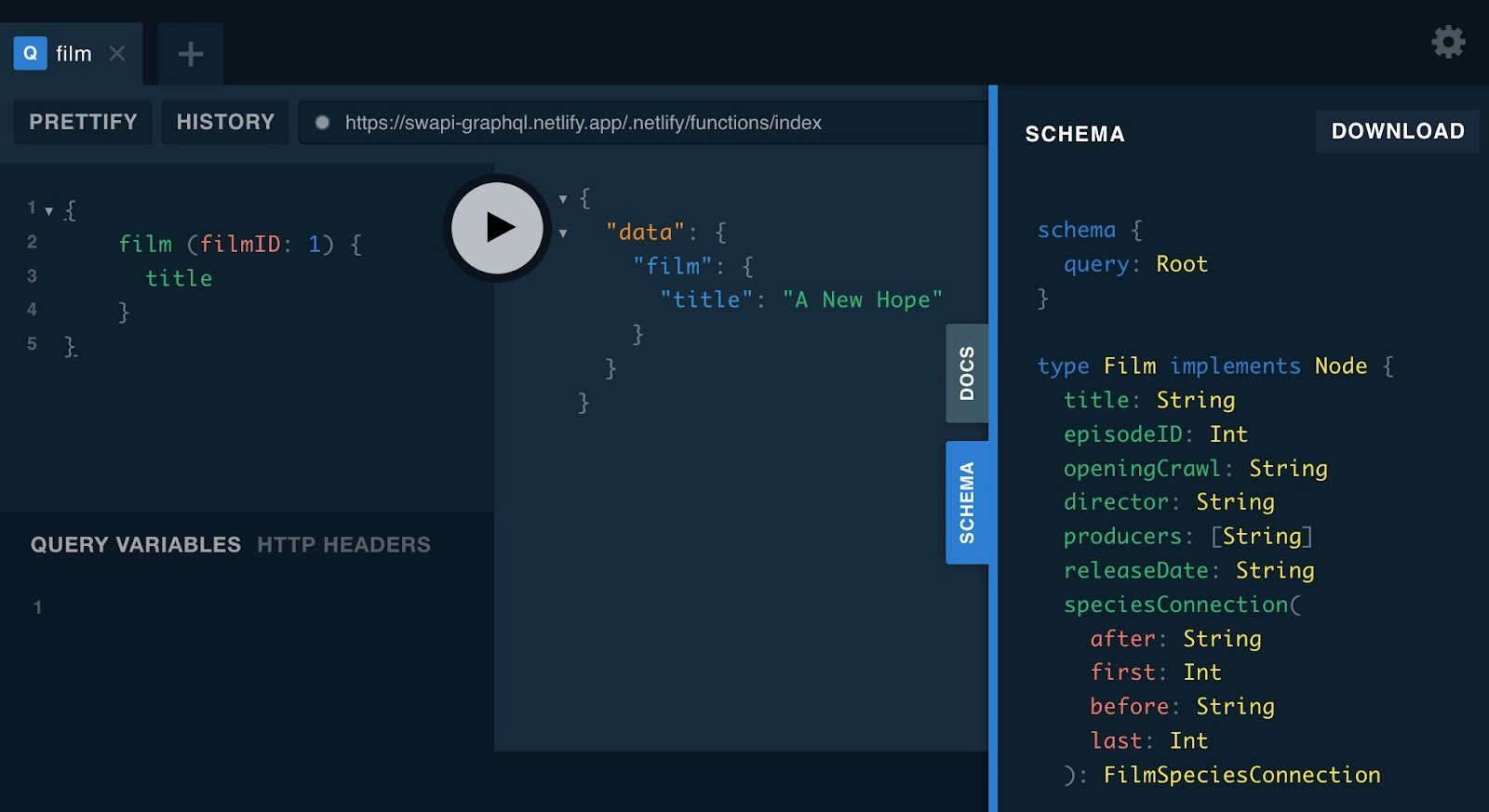 GraphQL comes with a sweet tool to help you write it: The GraphQL Playground.