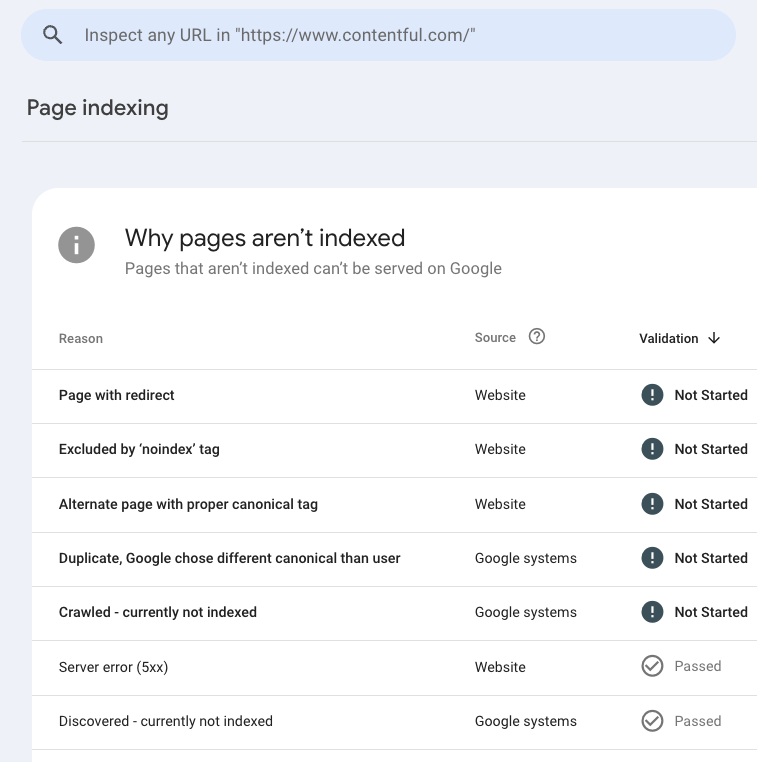 If you haven’t already, submit your XML sitemap to Google in GSC. Once your XML sitemap is processed successfully, click “See page indexing” and review all issues under “Why pages aren’t indexed.” These should be considered high priority issues to investigate as they might carry implications for indexation of important content or issues with the dynamic functionality of your XML sitemap, or both.