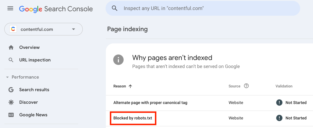 Navigate to “Indexing > Pages” and look for “Blocked by robots.txt”