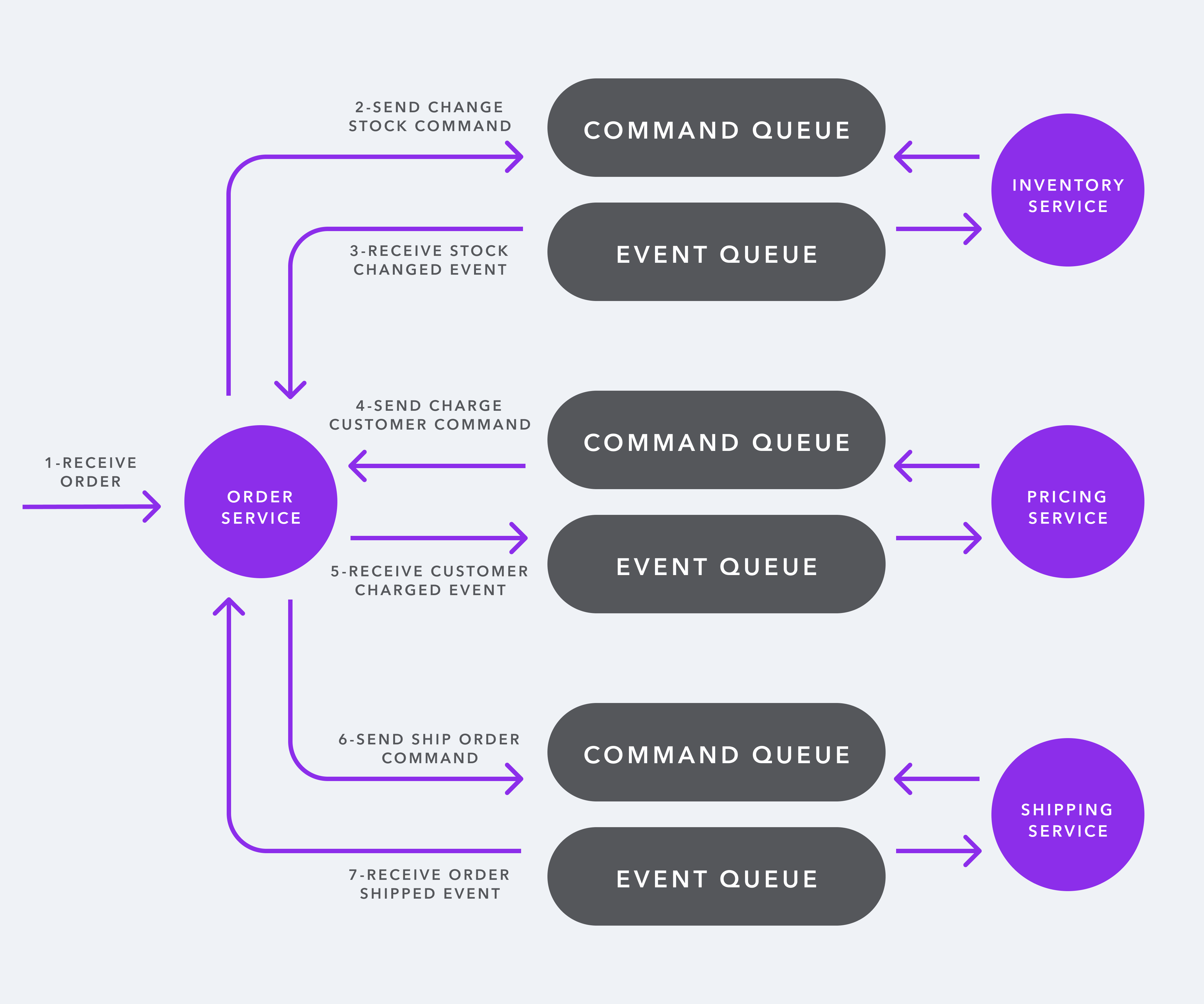 Order Service sends a command to Pricing Service to charge the customer, and awaits a response.