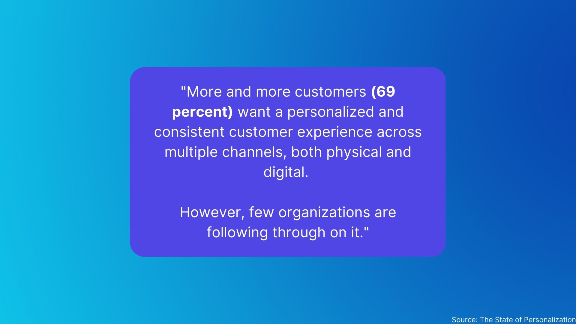 Although consumers are using about 3 devices and more than ten channels, only a handful of brands are ready to deliver an optimized, personalized omnichannel customer experience. Recent research found that less than 1 in 4 businesses say they are investing successfully in omnichannel personalization.