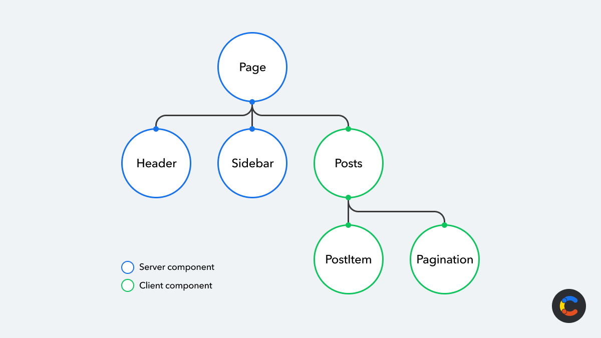 One important side effect of using React Server Components is that when you use a client component, all of its child components automatically become client components too. So, it’s best to keep interactive elements (like buttons or form fields) at the edges (or “leaves”) of the component tree. This way, server components handle most of the logic and data fetching, while the child components handle user interactions.