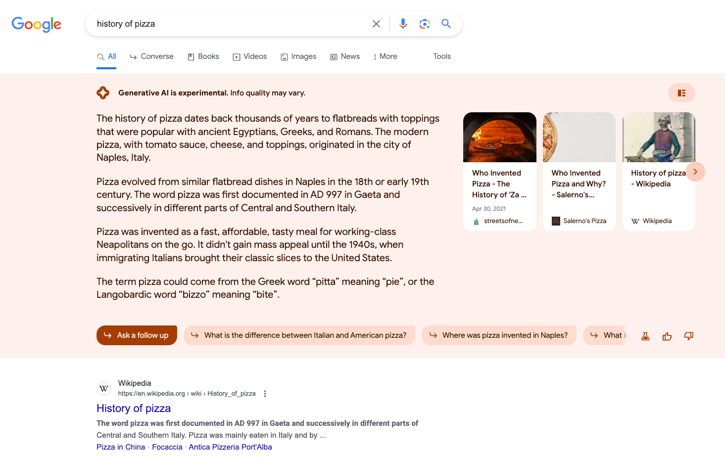 And finally, just a few months ago, Google revealed the Search Generative Experience (SGE), a new search engine powered by their new AI technology.
