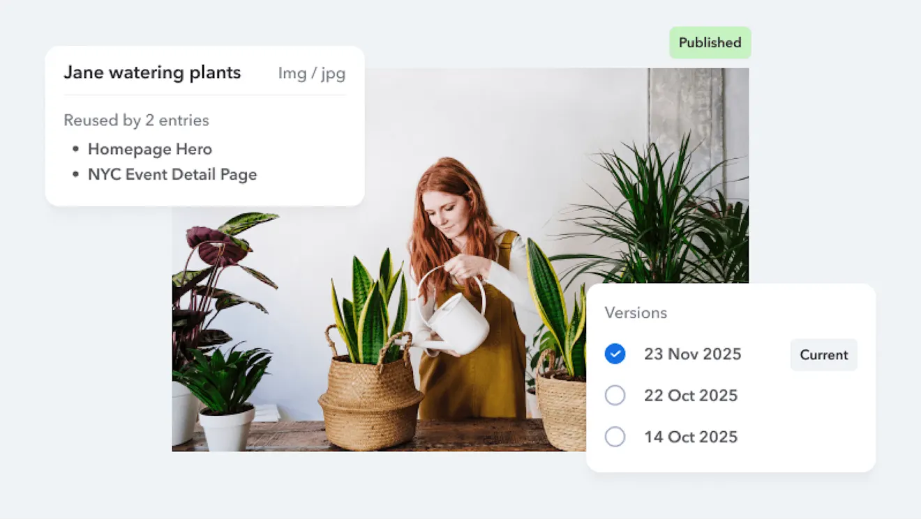 Link entries together into a content graph that keeps updates and relationships consistent across every channel. With structured references and flexible APIs, content can be pulled in anywhere.